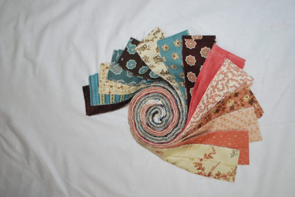 Country coral, brown and blue Jelly Roll 2.5" strips 42 pieces #7006