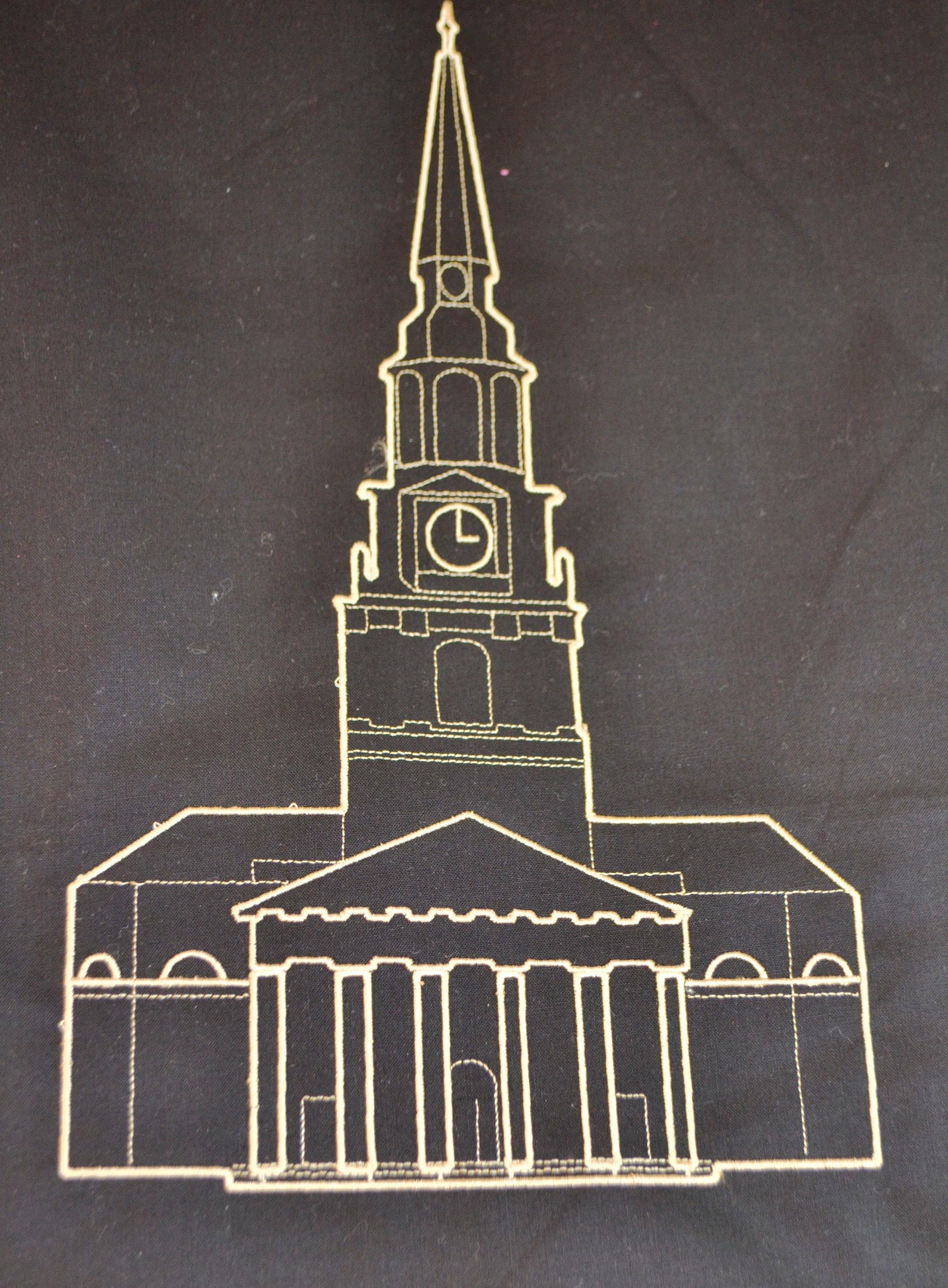 1) The focal center can be a choice of the embroidered WF OR an embroidered outline of Wait Chapel. NEW: OR choose the WF Wrought Iron.