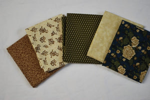 5 Half Yards Bundle pack #1007 Brown, Green, Blue