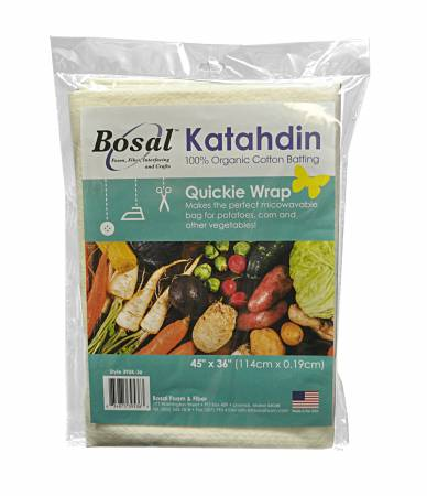 Katahdin 100% organic cotton batting for microwavable bag for potatoes, corn, and other vegetables.