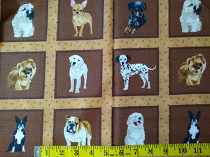 Panel of dogs on 3.5" squares with brown sashing of paw prints
