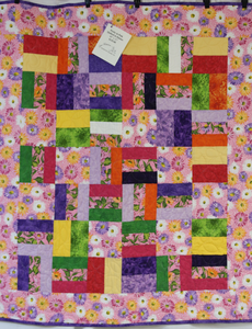 Pretty in Pink Daisies Quilt is 46" wide x 52" long. Brightly colored fabrics stitched with a daisy quilt pattern. This is a soft and snuggly quilt.