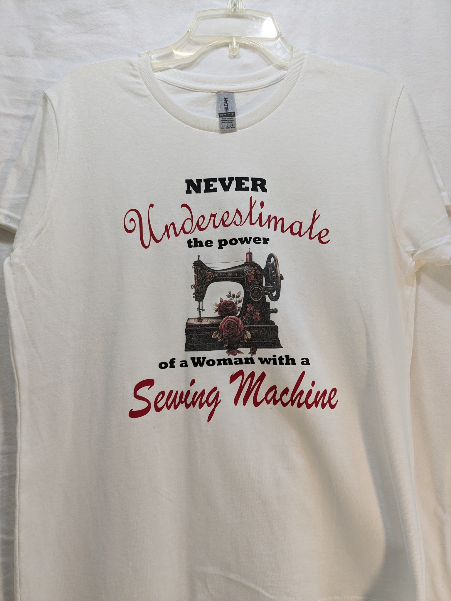 Quilt Themed T-Shirt - Never Underestimate - Red - White Crew Neck #6005